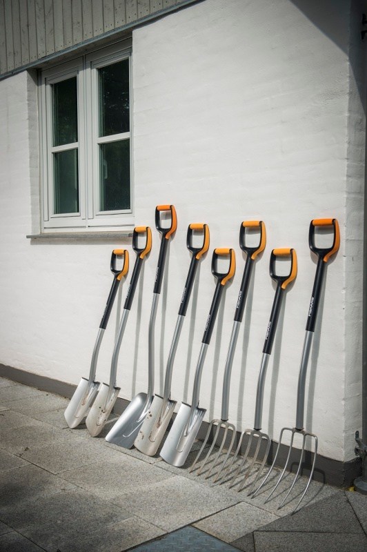 Ďalším členom produktovej rady je lopata Fiskars Xact™ so širokou zbieracou plochou prispôsobenou pre ľahké zdvíhanie a prenášanie objemného materiálu ako je pôda, piesok či sneh. Uhol 45 stupňov medzi hlavu a hriadeľou je optimálny, pomáha udržovať správnu pracovnú pozíciu a znížiť svalové napätie.
