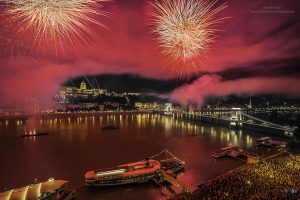 Budapešť je krásna metropola aj za bežného dňa. Ak však do ulíc vyjdú tisíce obyvateľov, aby oslávili národný sviatok a nad ich hlavami hýria všetkými farbami nádherné ohňostroje, je mesto prekrásne. Jeden z oslavujúcich, Tamás Rizsavi , atmosféru mesta nasával zo strechy hotela v samotnom srdci centra mesta, a pritom zachytával farebné dianie na fotoaparát. Foto: Tamás Rizsavi