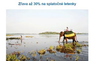 Dávame vám do pozornosti aktuálnu akciu na letenky spoločnosti flydubai so zľavou 30 %, ktoré sa dajú kúpiť do 29. augusta za nasledovné akciové ceny. Letenky si môžete rezervovať na webe www.flydubai.com. Bratislava – Dubaj: 245 € (spiatočná letenka) – napr. termín 14. 11. – 21. 11. Bratislava – Bangkok (Thajsko): 360 € (spiatočná […]
