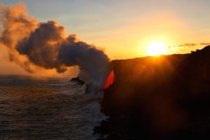 Vulkán Kilauea, nachádzajúci sa na Havajských ostrovoch, je jedným z najaktívnejších sopiek na svete. Jeho posledná erupcia bola zaznamenaná koncom januára tohto roku a bolo to skvelé divadlo. Žeravá láva prenikla až do vôd Tichého oceánu, a tak mohli všetci sledovať súboj dvoch mimoriadne silných živlov. Foto: USGS / Hawaiian Volcano Observatory