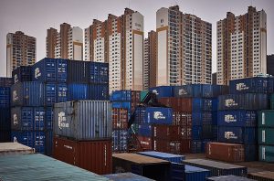 Kontajnery sa stali ústredným prvkom globalizácie a medzinárodného obchodu, pretože umožňujú efektívne využitie priestoru. Vo svojej poslednej sérii fotografoval umelec Manuel Alvarez tento fenomén naprieč celou Áziou. Všetky hlavné medzinárodné prístavy kontinentu sú naplnené kontajnermi, ktoré sa stávajú neoddeliteľnou súčasťou krajiny. Foto: Manuel Alvarez