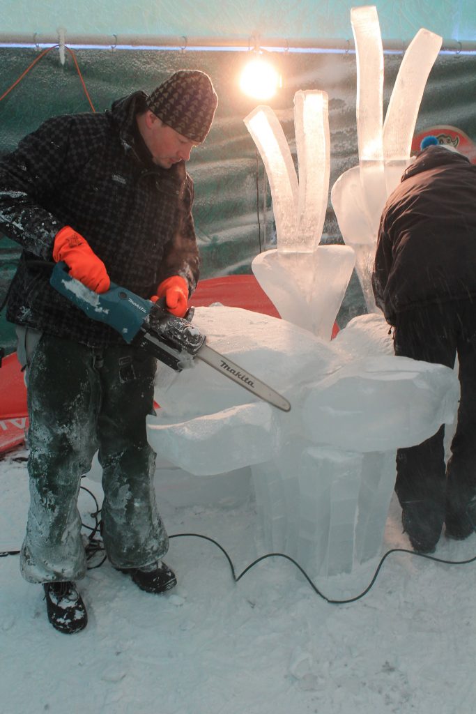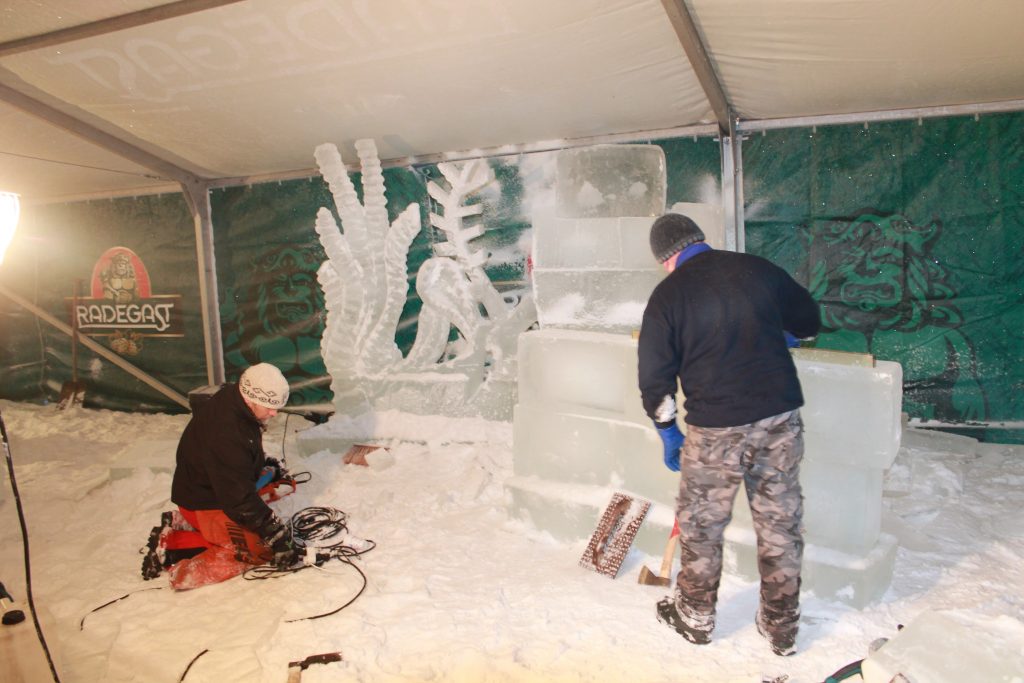 Ten, kto by rád zhliadol tvorbu sôch v priamom prenose by mal doraziť na Pustevny hneď prvý víkend výstavy, v sobotu alebo nedeľu (6.-7. Januára 2018). O tomto víkende budú sochy v hlavnom stane na lúke pred kolibami už hotové a nasvietené. Rezanie sôch bude prebiehať v druhom stane, pod novou hornou stanicou lanovej dráhy.