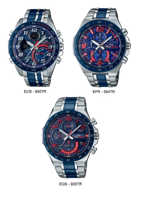 Nová edícia EDIFICE Scuderia Toro Rosso Limited Edition prichádza na trh v trojitom prevedení a modely sú navrhnuté v spolupráci s pretekárskym tímom Formule 1 Scuderia Toro Rosso, ktorý Casio podporuje ako oficiálny tímový partner.