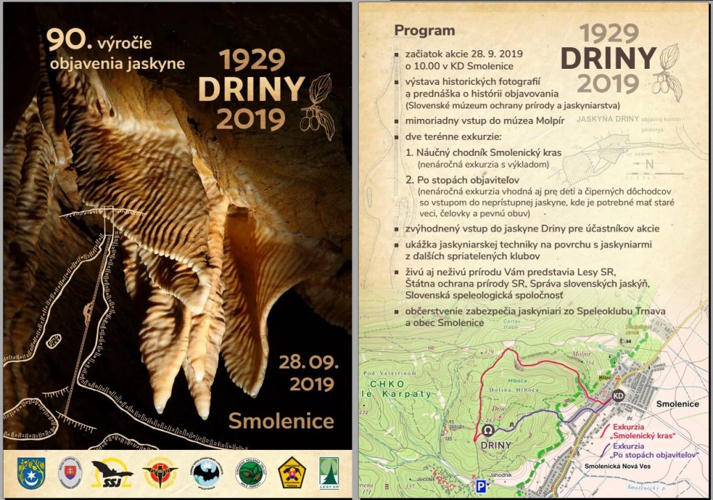 Priaznivci prírody a jaskyniarstva si prídu 28. septembra na svoje. Jaskyňa Driny oslavuje 90. výročie objavenia. Pri tej príležitosti sa zoznámite s unikátnymi historickými fotografiami objaviteľov jaskyne Driny, terénnymi exkurziami, mimoriadnym vstupom do neprístupnej jaskyne, či ďalšími aktivitami.