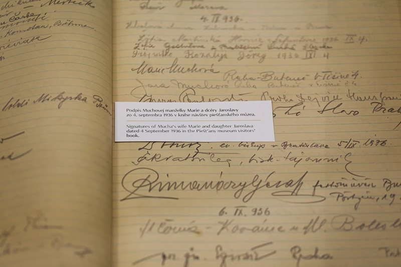 V Piešťanoch je výstava obohatená o špeciálnu časť venovanú Muchovmu vzťahu k tomuto medzinárodne známemu kúpeľnému mestu na začiatku 30. rokov 20. storočia. Kurátor výstavy PhDr. Vladimír Krupa predstavil výber vzácnych archívnych dokumentov a fotografií Muchu a jeho rodiny, ako aj reprodukciu Muchovho obrazu Buď pozdravená, požehnaná studňa zdravia (1932), jedinej veľkej olejomaľby na slovenský námet, ktorú Alfons Mucha vytvoril počas pobytu rodiny v Nice. Obraz bol poďakovaním piešťanským kúpeľom za uzdravenie jeho dcéry Jaroslavy.